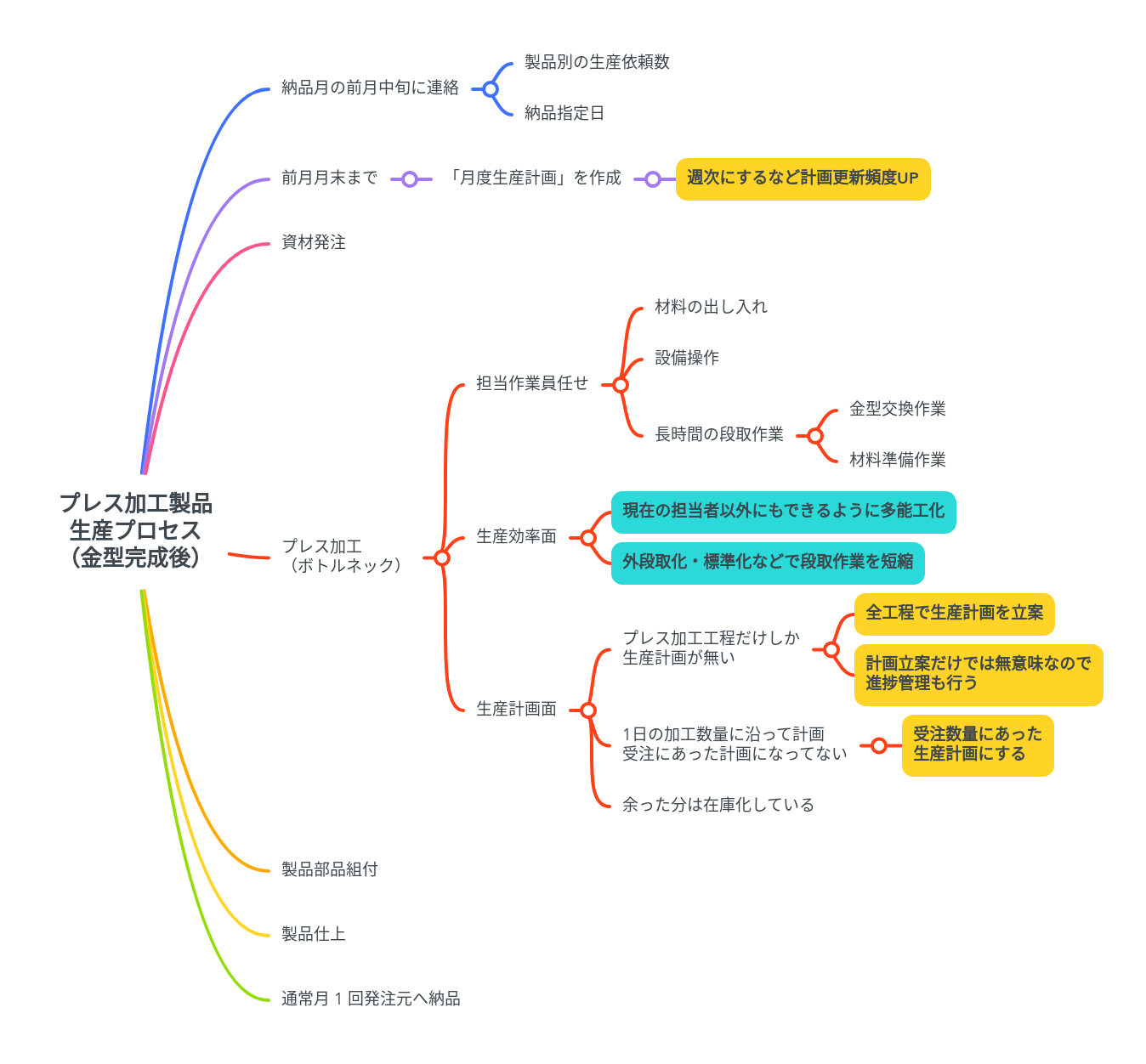 内容は、紙ベースでの社内やりとりを廃止、社内データベース構築により生産管理に関する情報を全社的に一元管理、リアルタイムの共有を図る。社内活動は現在社内にある情報の保存方法などに統一ルールを作り、社内教育により全社員に徹底の上で運用する。(118字)