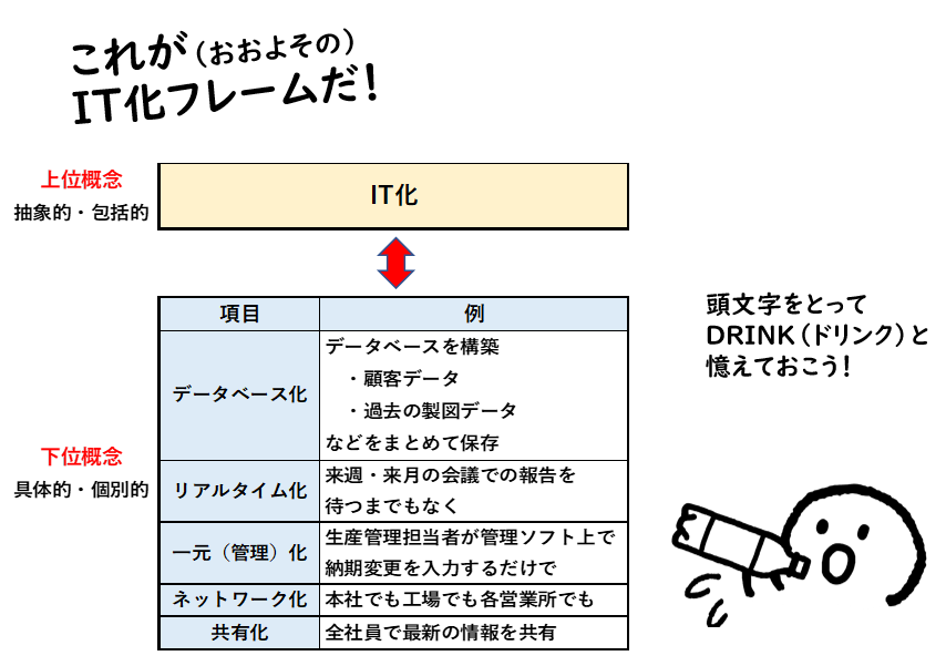 こんな感じで、現在の業務をIT化によってどう変えていくかが解答のメインであるべきで、何を導入するかは手段に過ぎない、とも言えます。