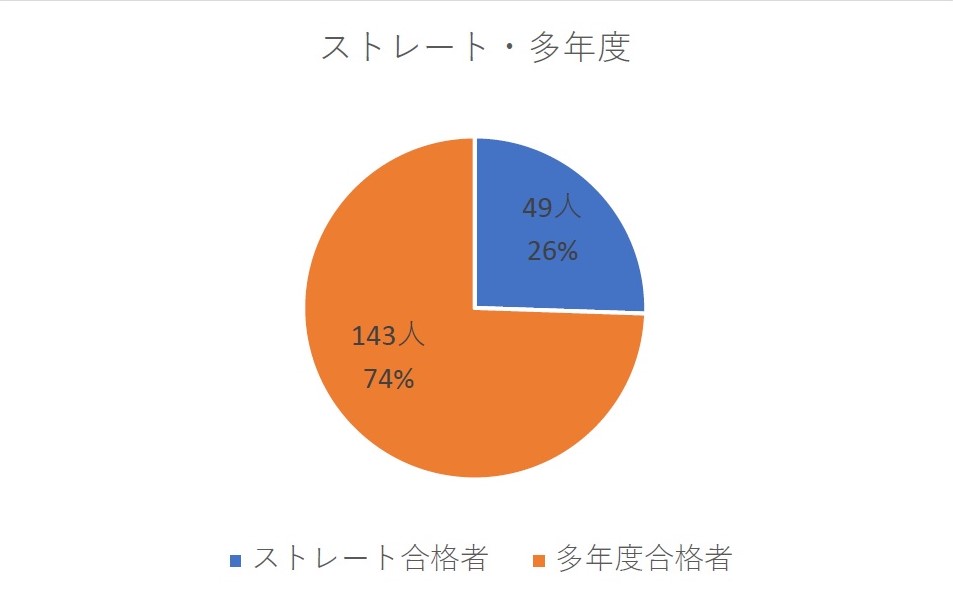 答えは49人、タキメン全体のうちの約26%がストレート合格者です。