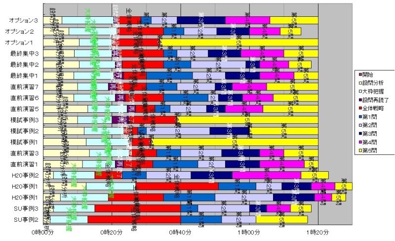 各プロセスの時間を細かく計測しつつ、どこで事故が起きたか、漏れてる作業は何か、毎回の演習問題を解くごとに4~5時間かけて、解答プロセスのブラッシュアップ作業を続けてきました。