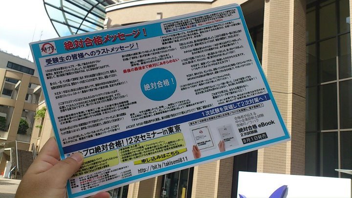 先日の1次試験会場では、受験生の皆さんへの応援用のチラシをお配りしていました。ご覧になった方もいらっしゃるのでは?