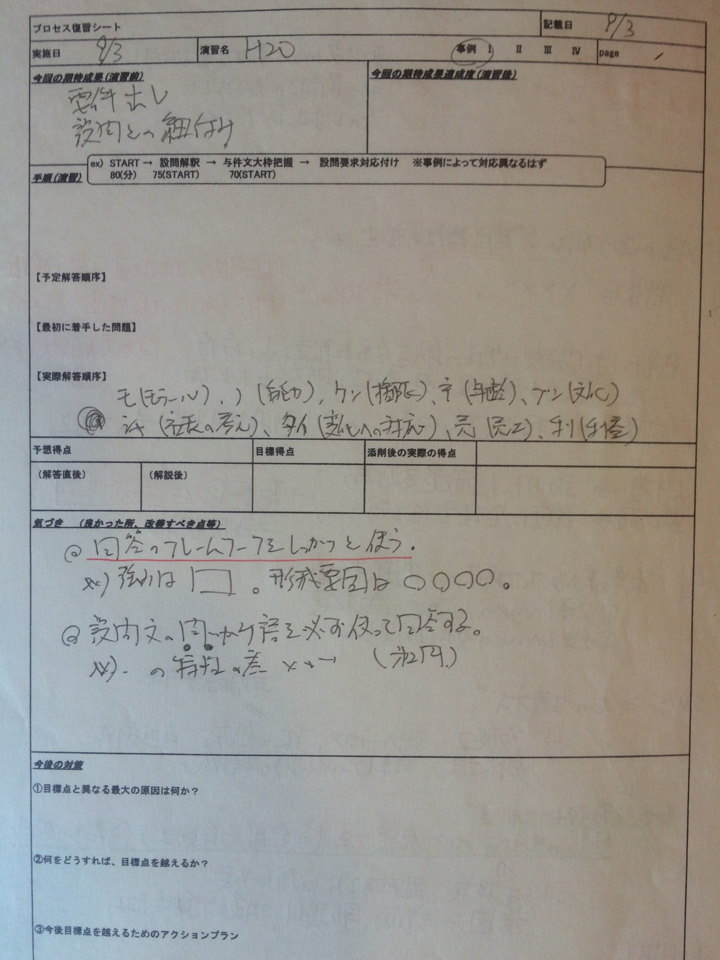 なお「振り返りシート」については合格道場タキプロの大先輩方もノウハウをご紹介して下さっています。タケシのやり方だけでは無くこれら先人の知恵も参考にした上で自分に合うようにアレンジして効率的な勉強を目指しましょう。
