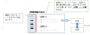 いろんな回答方法を模試で試行錯誤しながら試してきて、昨年の本番でやってみた方法がこちらです。前回も触れさせていただきましたが、自分に合う合わないもありますし、本質的でないと思われる方もいらっしゃるかもしれません。それでも1点でも上がるならばという方は一度、お試しください。