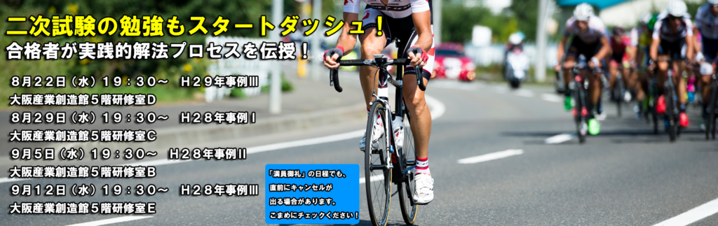 今年もタキプロ関西は「合格者・受験生参加型のみんなで創る勉強会」をキャッチフレーズに、二次試験対策のための勉強会を開催します。