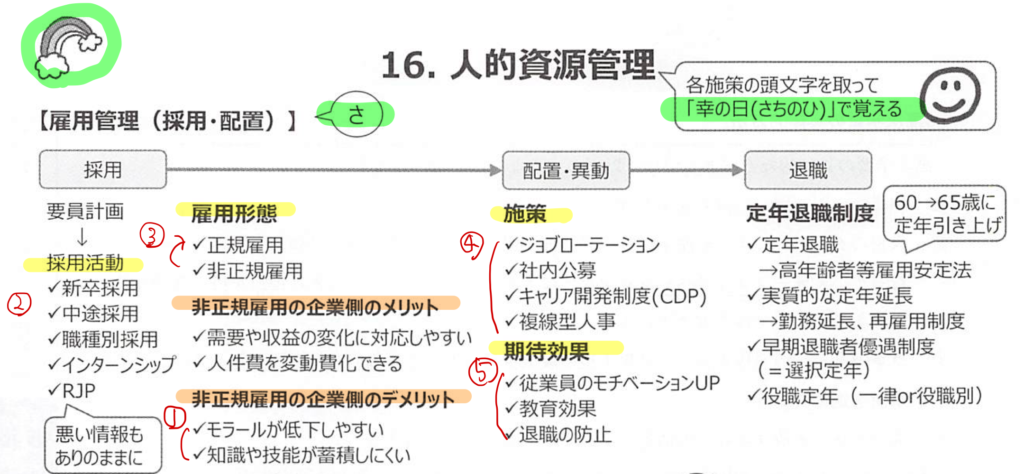 図1のまとめシートの人的資源管理の採用の部分の切り抜きを見てください。