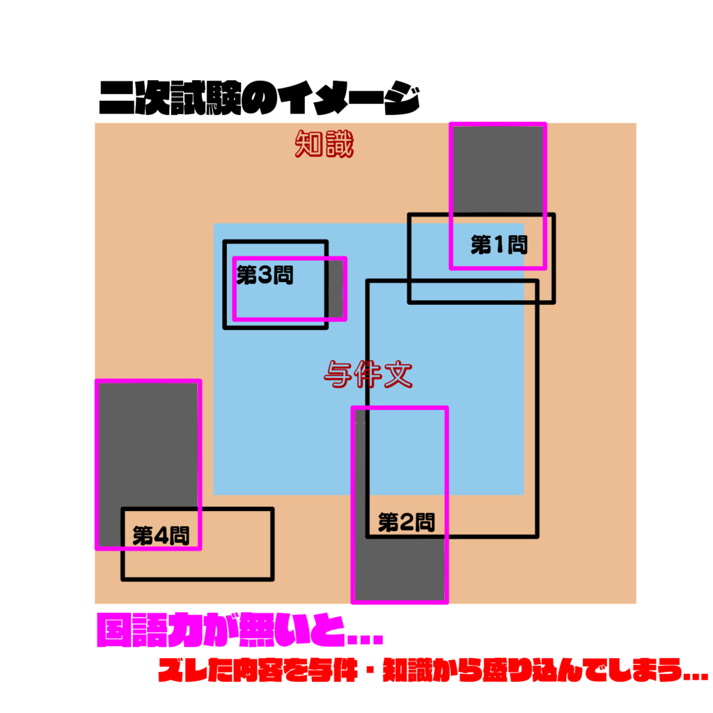 現実では、前者も後者も重要なのですが、この二次試験という箱庭の中では、より後者に重きが置かれています。