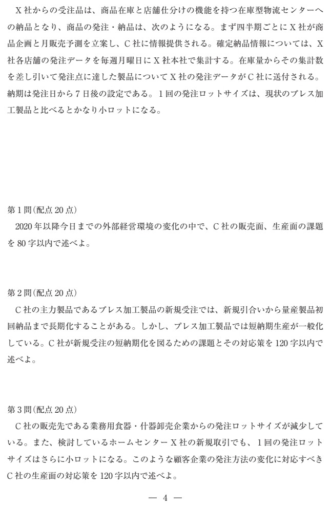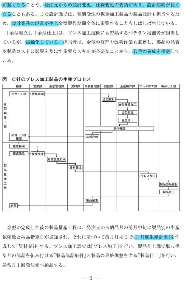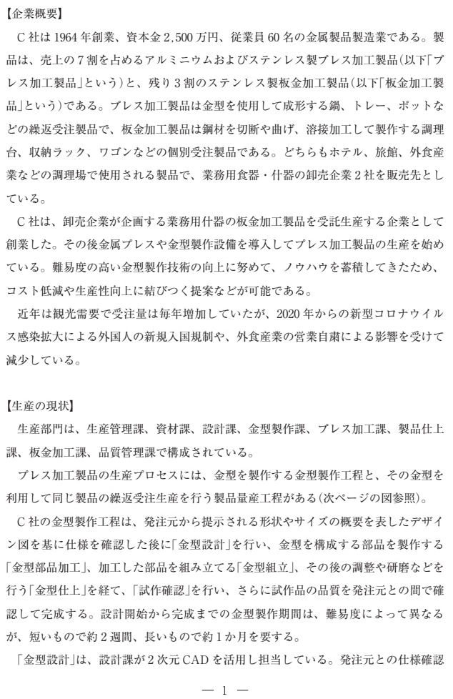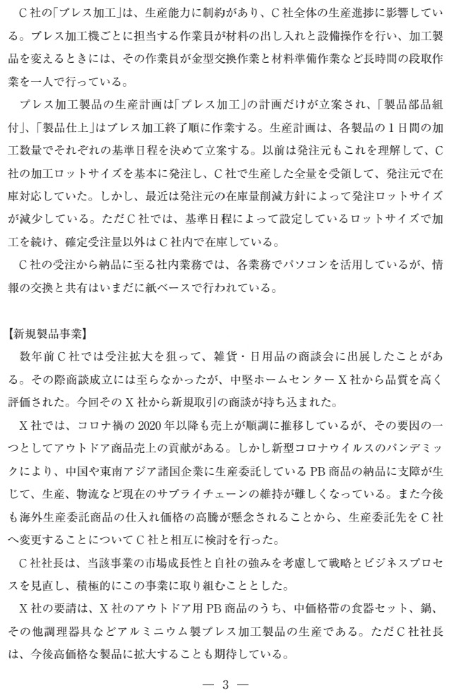 事例Ⅲ(C社)は、生産管理・運営に関する事例です。