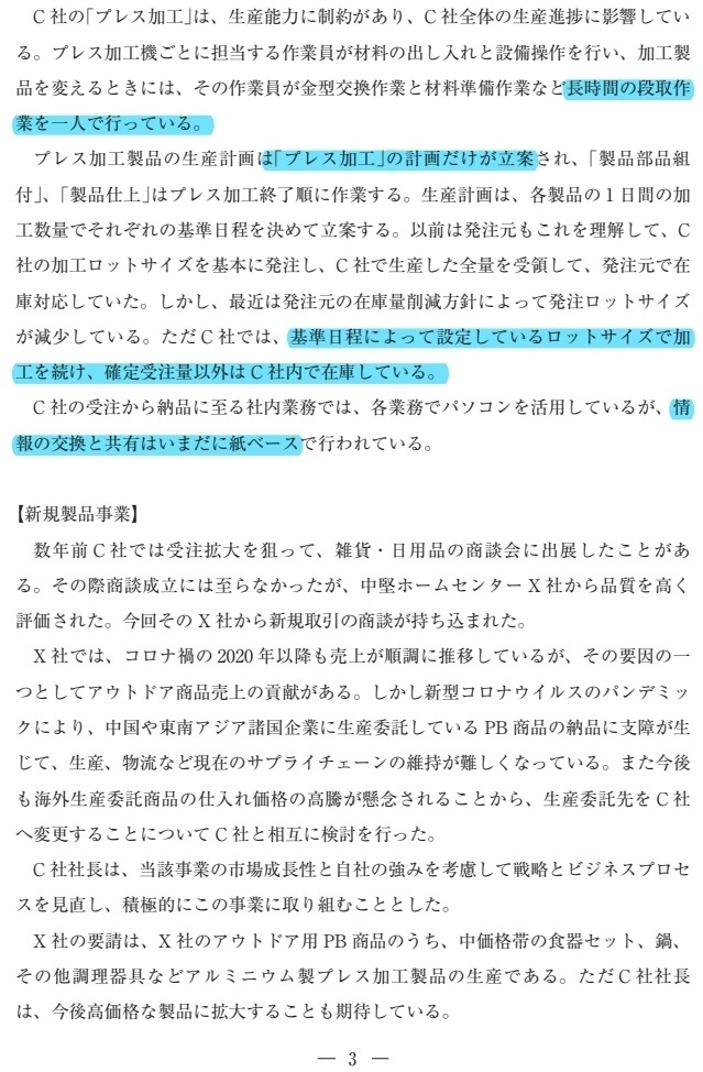 ☆生産戦略を整理する際に、与件文の段落重複は避ける