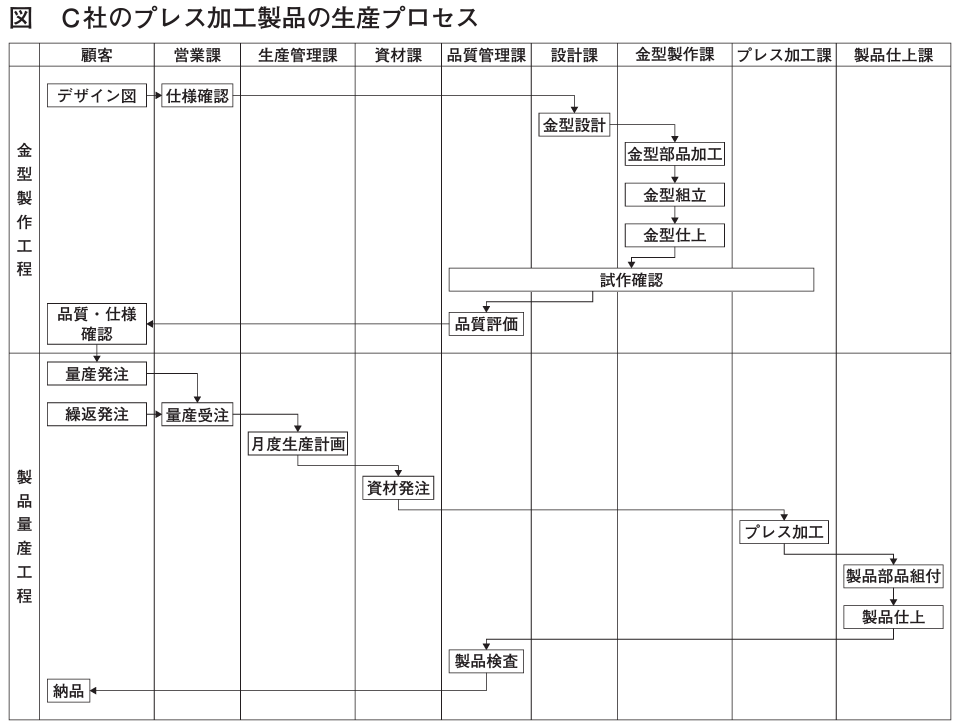 もう一つ事例Ⅲを苦手と感じた理由として、C社内や外注先・受注先などとの間で製品や部品が流れるのですが、そのシーンがすっと頭に入ってこないことも多かったことが挙げられます。さらに輪をかけて、図表が出てきた場合にはそれを読み解くのにも時間がかかりました。本来図表の役割は、読み手の理解を促進するものであるはずなのに、事例Ⅲの図表は読み解くのに時間がかかるものが多く、初見で図表を目にすると、いつも「うわっ!」となってしまいました。