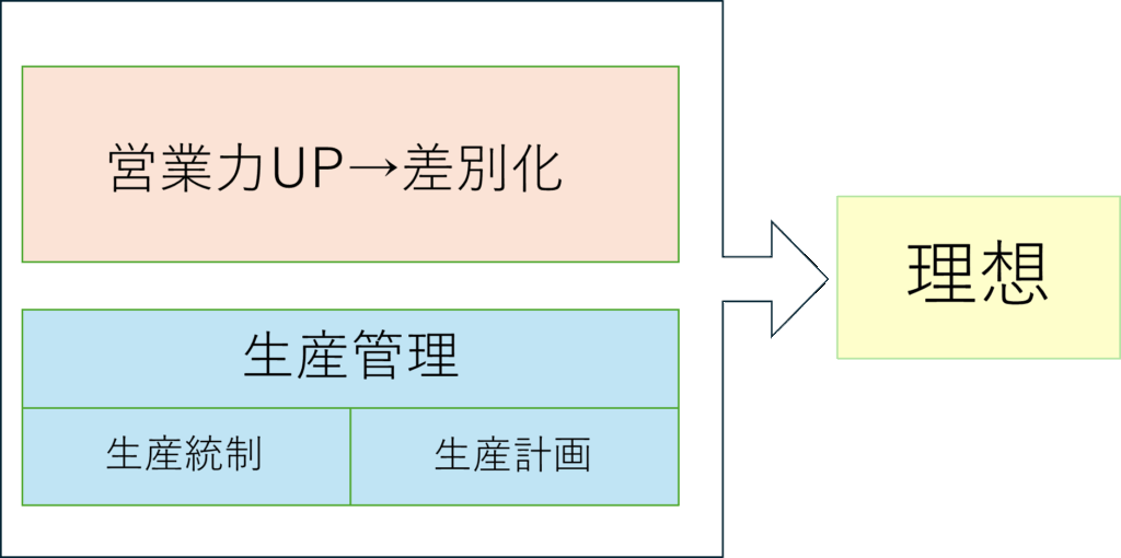 事例Ⅲは、ざっくり行ってしまえば生産管理で企業の「土台」を作り、また状況によっては営業を「強くする」ことで差別化を成し、C社の理想を叶える科目です。