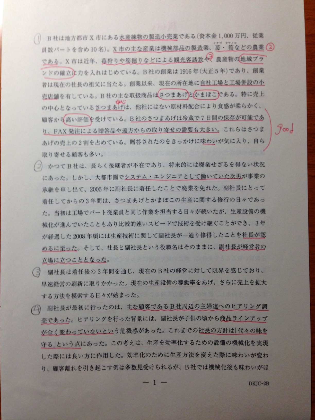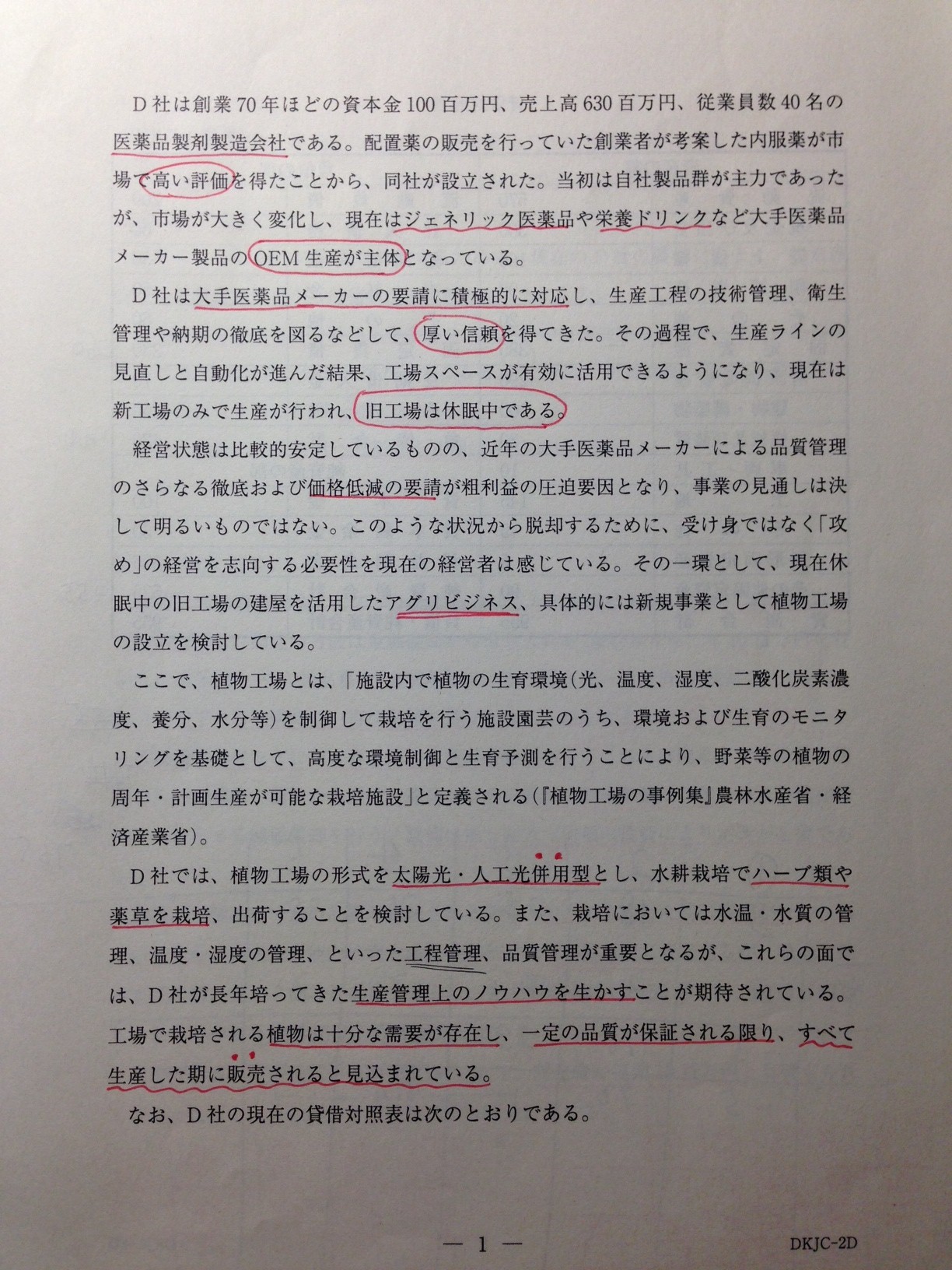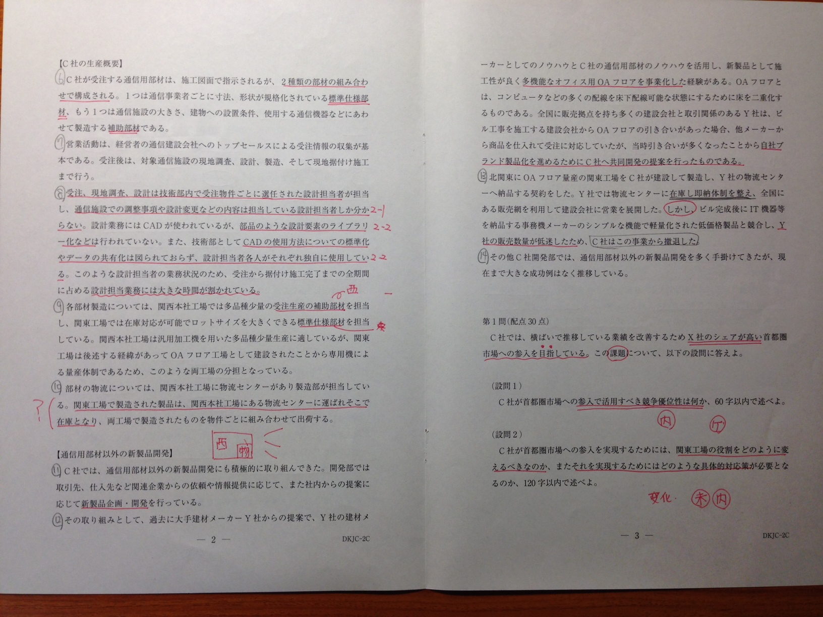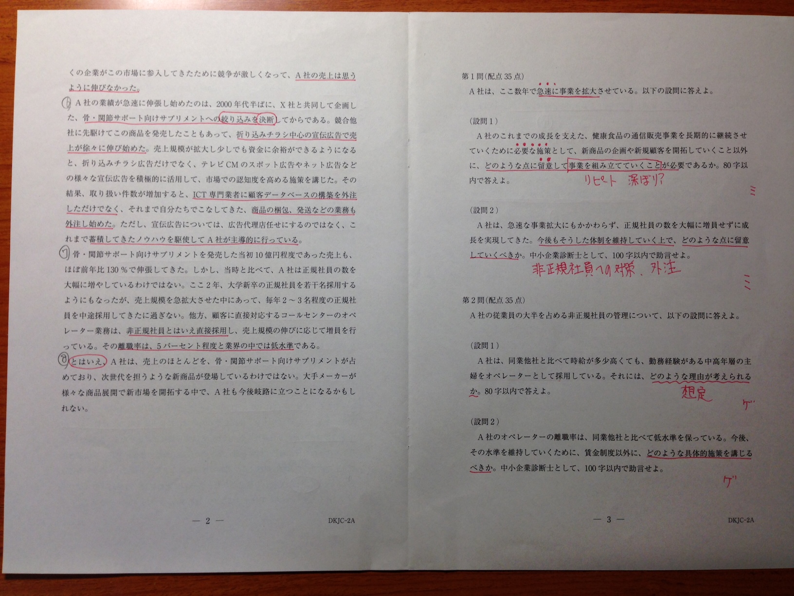 あくまで、与件分に沿った解答が必要となりますが、汎用性を持ったキーワードを自分の頭の「引き出し」に入れて試験会場に持ち込みました。