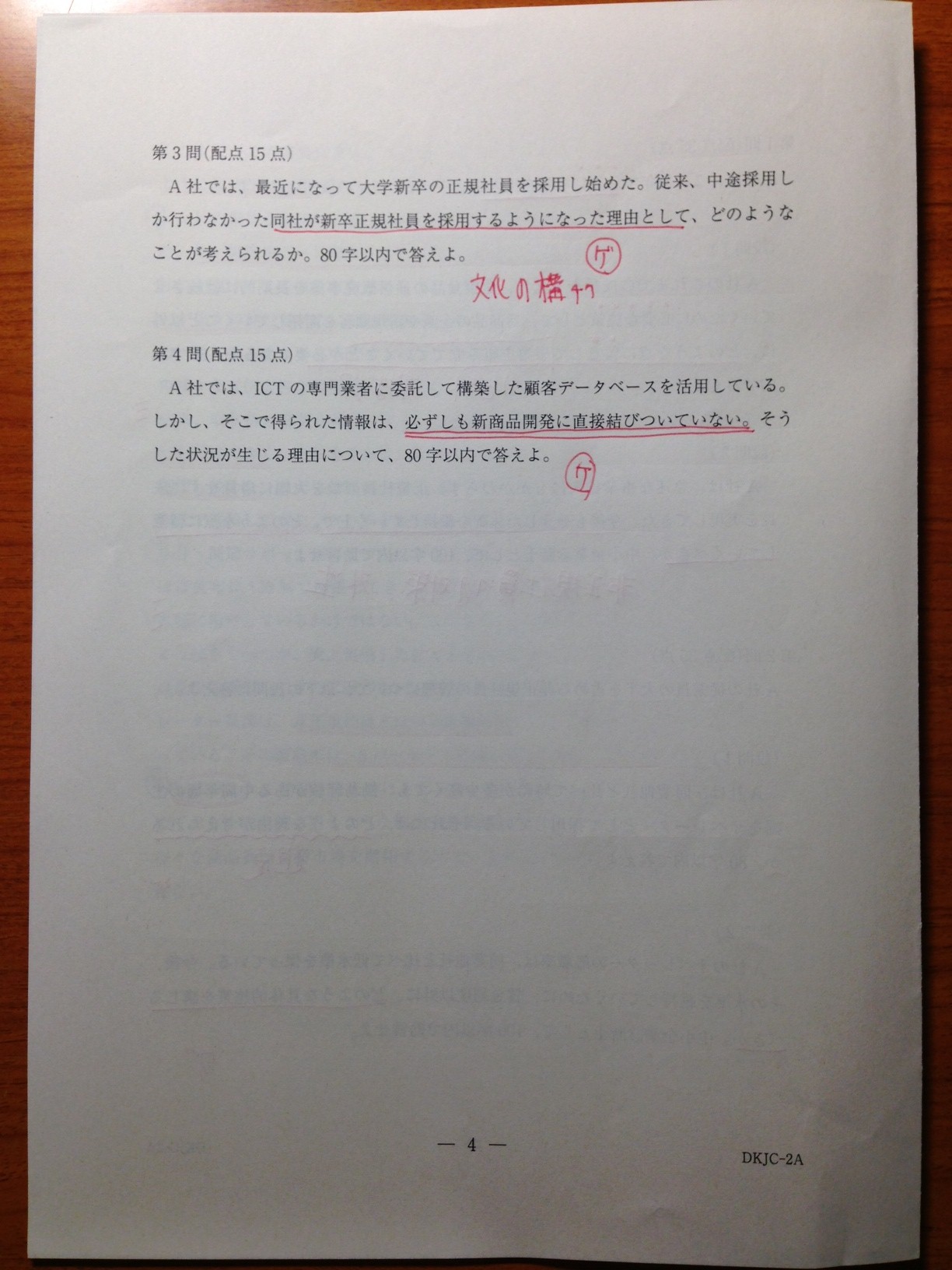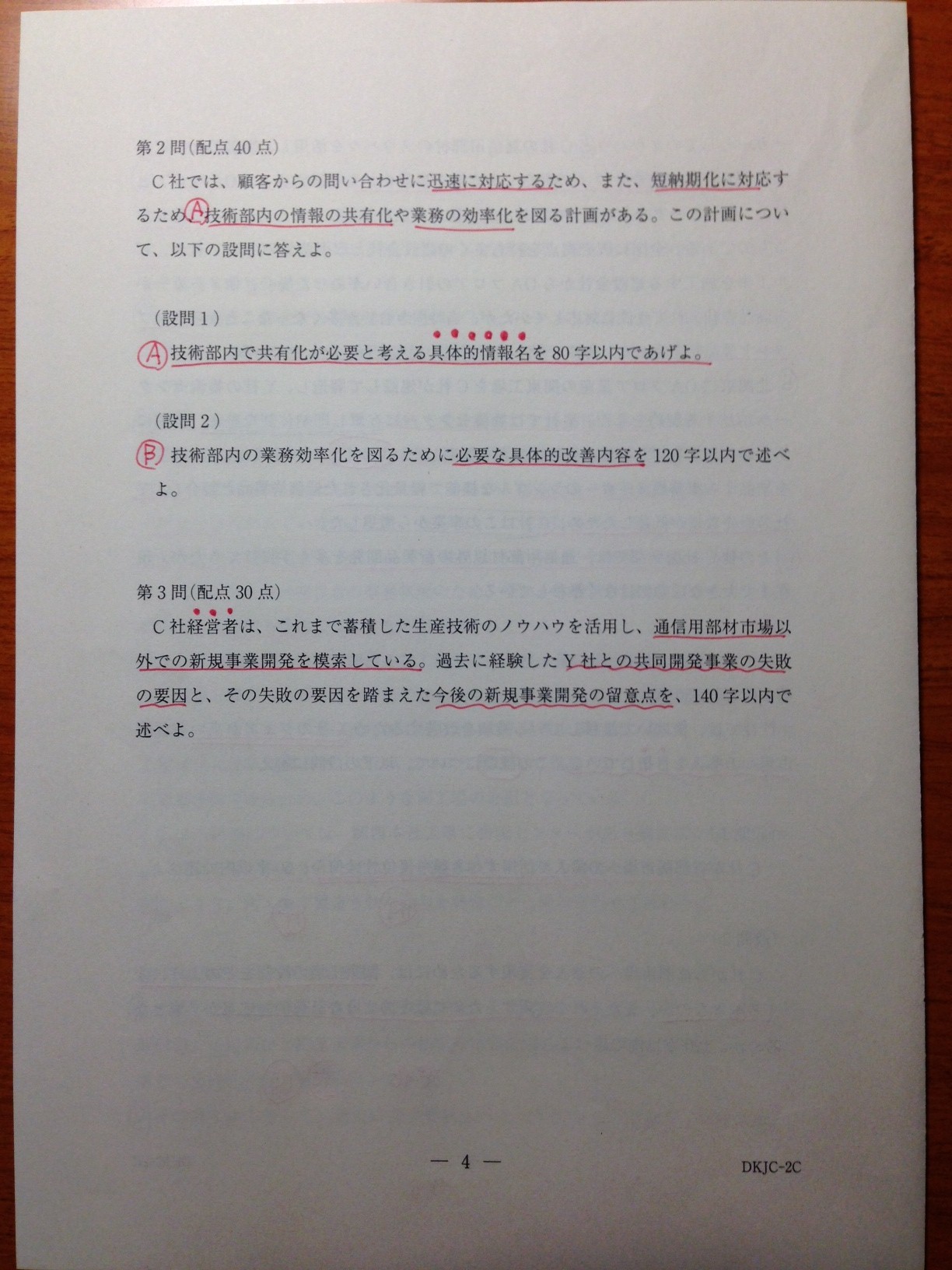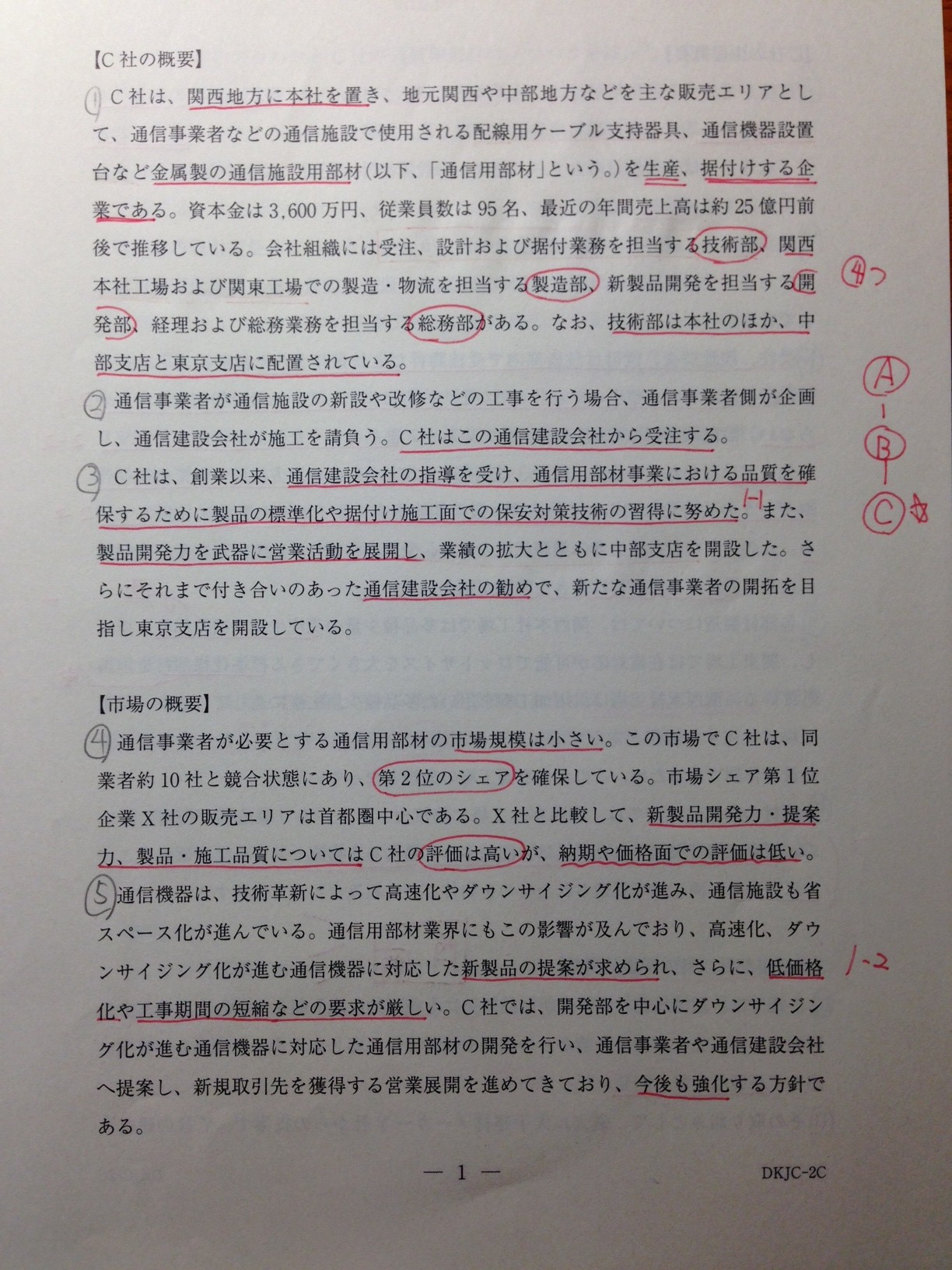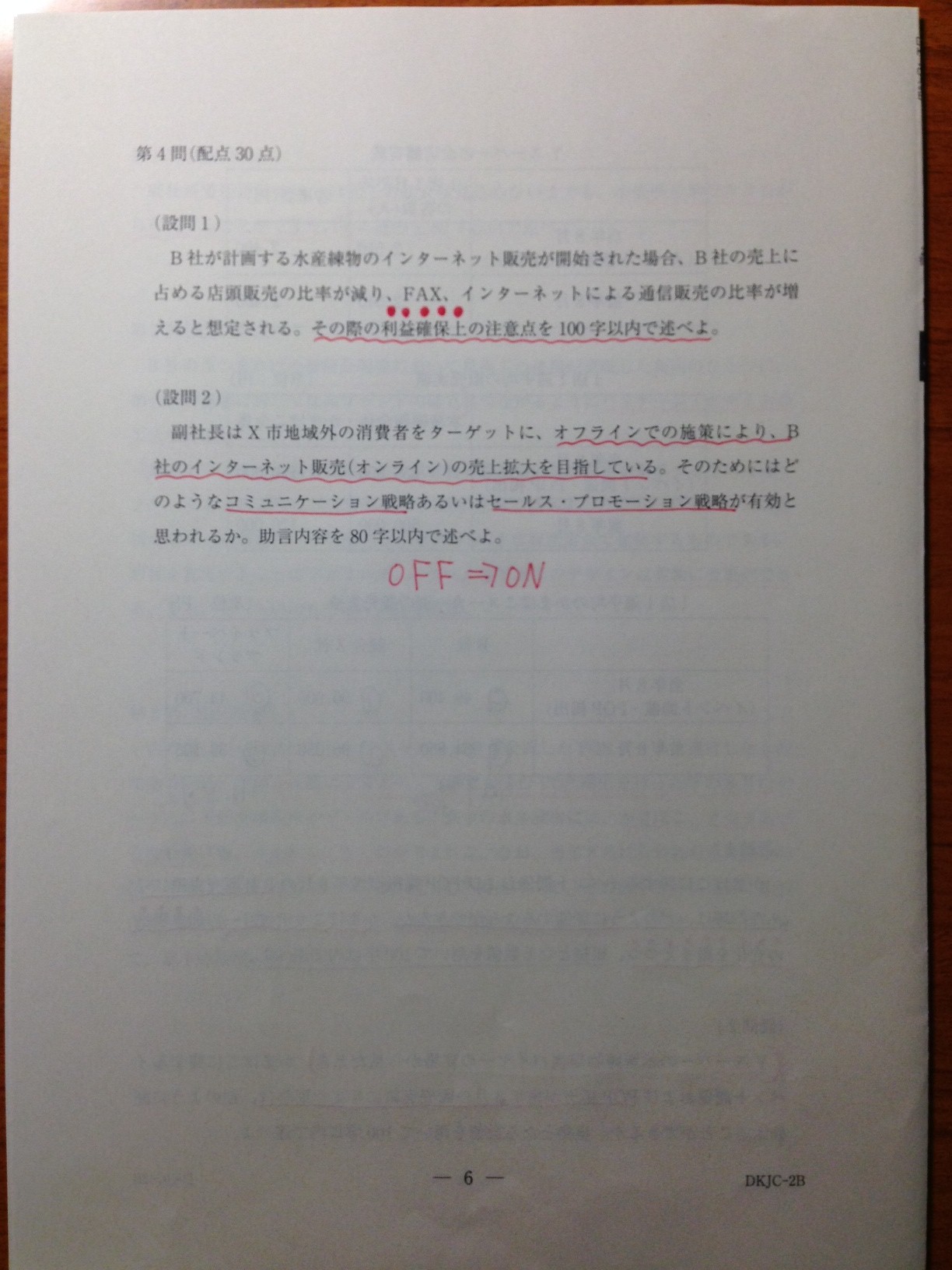 あくまで、与件分に沿った解答が必要となりますが、汎用性を持ったキーワードを自分の頭の「引き出し」に入れて試験会場に持ち込みました。