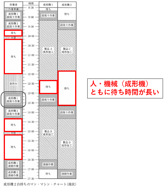 ・図2 成型加工作業者の一日の作業内容(マン・マシン・チャート)