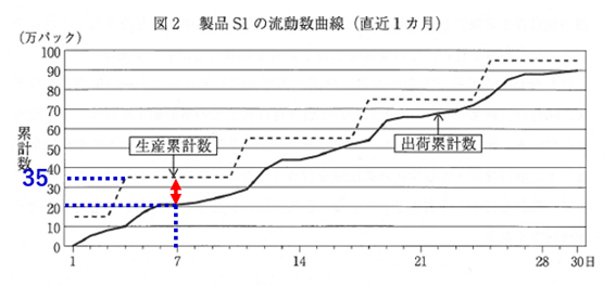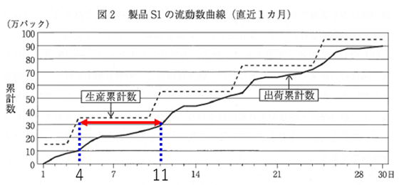 図1では、在庫が増えている(グラフが垂直に立ち上がっている)日に