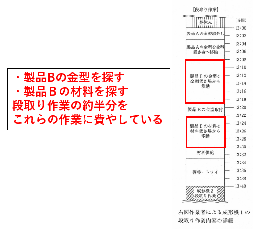 という作業に段取り時間の約半分を費やしてしまっていることが分かります。