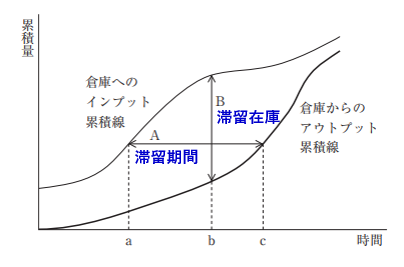 インプットとアウトプットの差分の縦軸(Bに相当)が時点bにおける「滞留在庫」