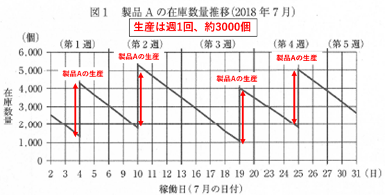 「製品Aの生産ロットサイズは約3000個、週1回の生産を行っている」