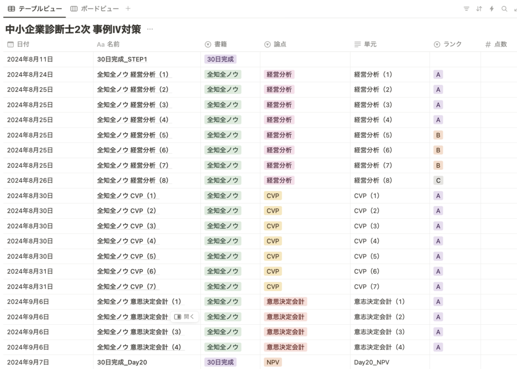私はNotionを利用して学習履歴を記録していました。