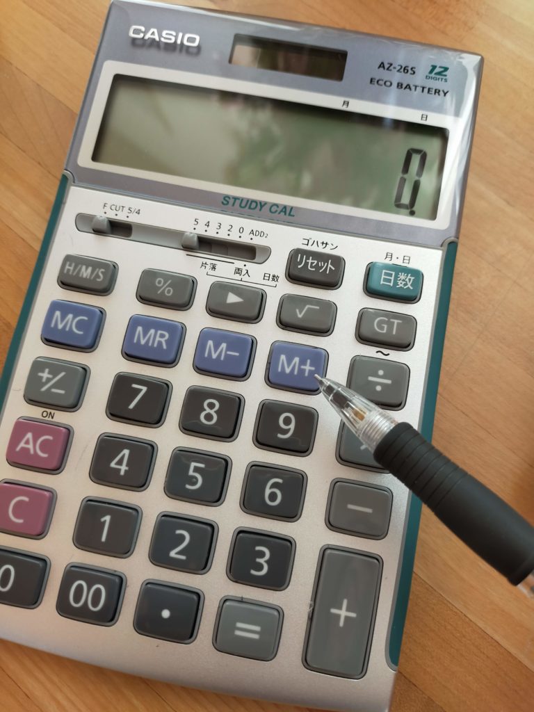 私は、電卓と友達になった上で(←この後説明します)、1)の全て計算する方法で「訓練」することに決めました。どちらも一度やってみて自分がしっくりくると思う方でよいのですが、訓練期間が必要なので、1次試験くらいまでにどちらかに決めるとよいです。