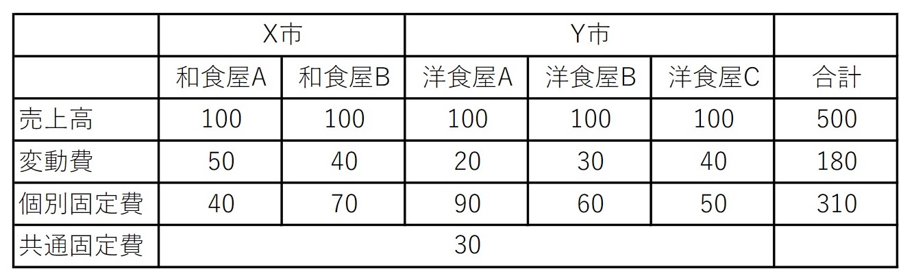 ※ 実際には、不採算店舗を閉めることで個別固定費を削減できるのかなどの疑問も残りますが、シンプルな設定で考えてください。