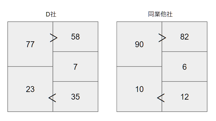 同業他社についても同様に計算して、ボックス図に数字を入れていきましょう。こんな感じです。