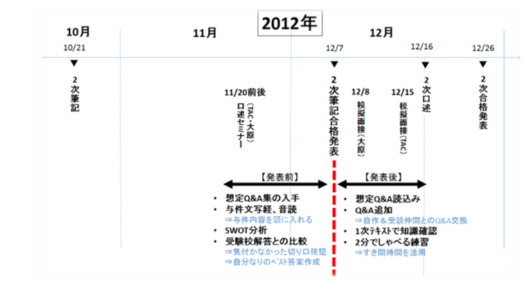 昨年の2次筆記試験以降を時系列でまとめてみました。受験校の口述セミナーが始まる11月下旬から、ボチボチ口述を意識して準備を開始したという感じです。