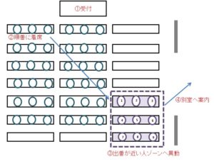 そのうち、順番が近くなってきたら別の一画に移動します。