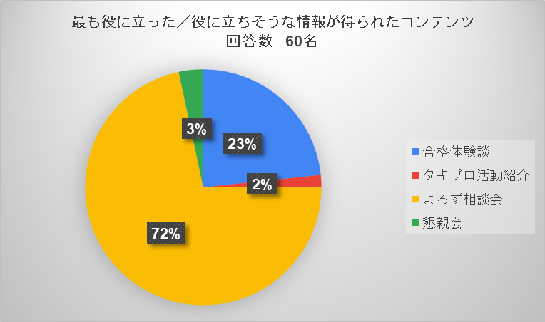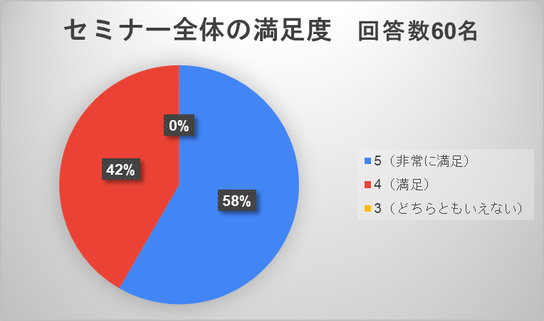 セミナー全体としては、全員の方に満足いただけたそうです。また、一番役立つコンテンツは「よろず相談会」を挙げられた方が最も多かったです。
