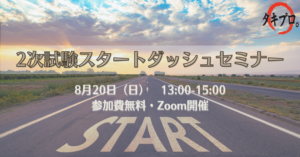 *「2次試験スタートダッシュセミナー」の詳細は、こちらのタキプロのセミナーページをご覧ください!