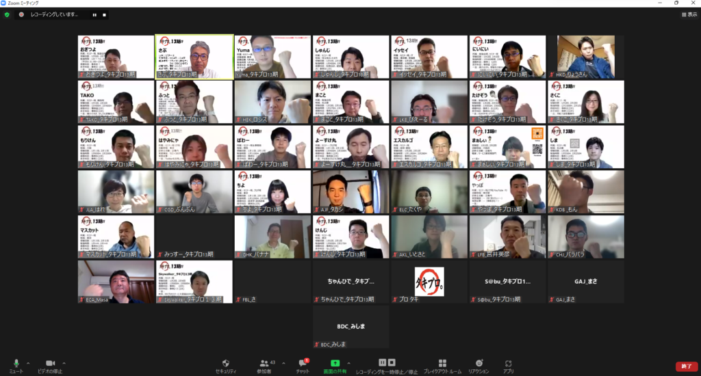最後にタキプロメンバー、参加者の皆さまと記念撮影!オンラインだからこそ、日本全国の方々と繋がることが出来るセミナーを開催出来ました^^