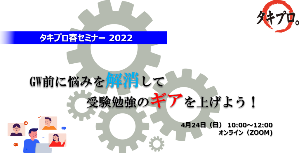 GW直前の週末、受験生の皆さんの「連休をどう過ごせばいいの?」というお悩みを解消し、スッキリした気持ちで受験勉強に専念してほしい!という想いから、タキプロ春セミナーを開催いたしました!