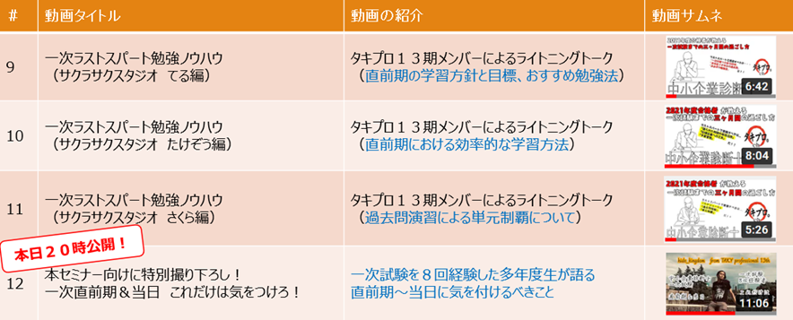 その代わりスキマ時間に見てもらうためにYoutube「タキプロチャンネル」にて今回のセミナー用に作成したコンテンツを動画化してアップロードしました!