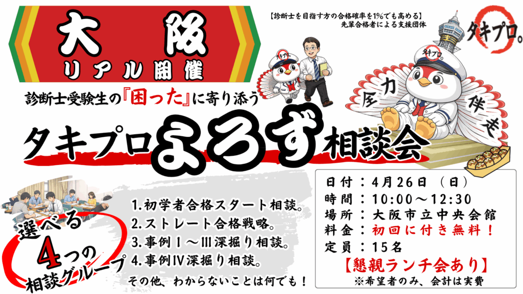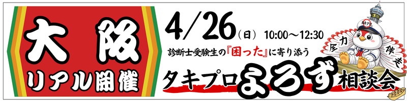 そんな皆さんのために、今後の試験までの勉強の仕方などについて、タキメンとリアルで相談できる「よろず相談会」を開催します!