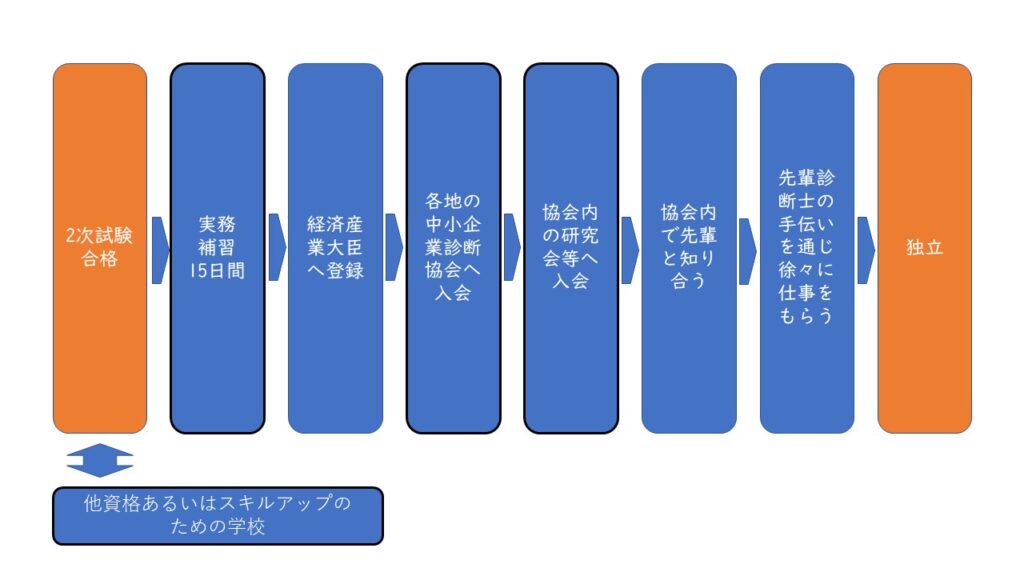 私の話をする前に、多くの方が歩むであろう、稼げる診断士になるまでの一般的な流れについて説明します。