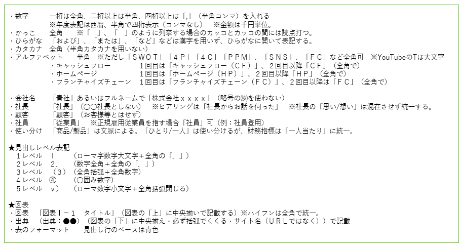 チームで共通の原稿用紙を用い、ページネーション、図表への付番、用語法についても、次のような「お約束(テンプレート)」を作って統一しましょう。