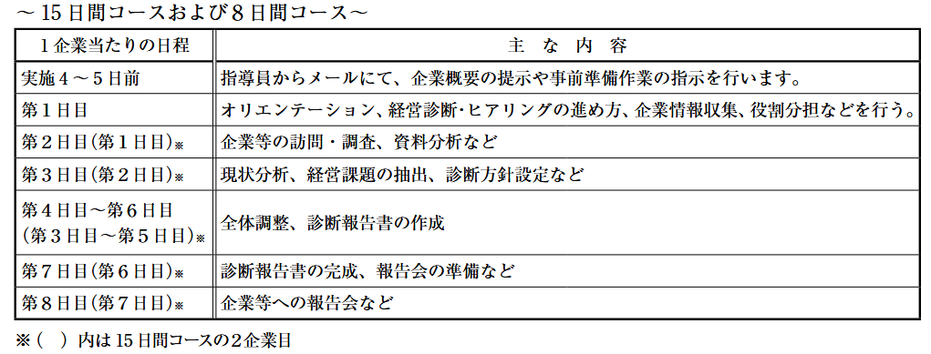 中小企業診断士実務補習のご案内」にスケジュール例が掲載されています。