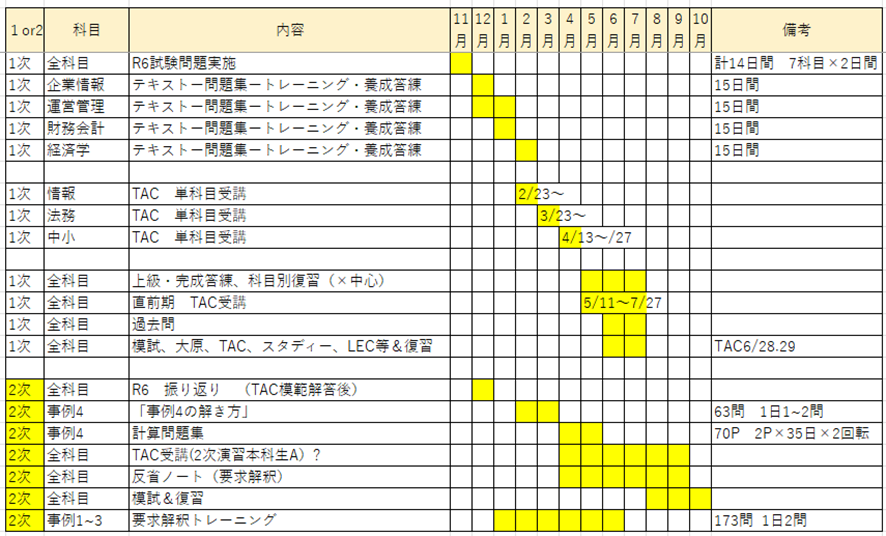 上述の検討を踏まえ、11月時点で作成した年間計画が下記です。
