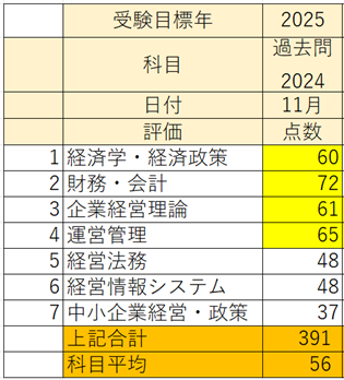 過去問を解いた結果は、下記の通り