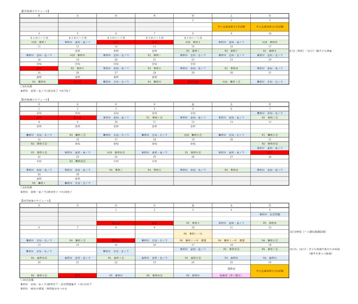 【8月~10月勉強計画(実績)】