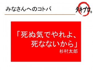 その代わり、自分自身のココロのなかでつぶやくことはあっても、あまり他人に披露していなかった言葉をご紹介します(関西の直前セミナーでは披露しました(^^ゞ)。杉村太郎さんの著書「アツイコトバ」で紹介されている言葉の一つです。