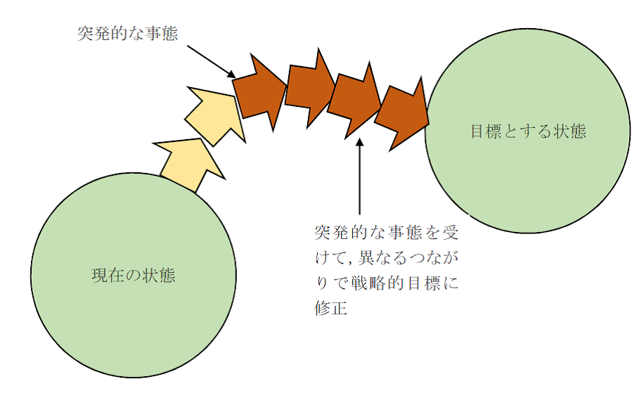 「人生いろいろ」(島倉千代子)であるため、これからもきっと「いろいろ」あります。その際には,つながりを構成している「手段」(≒戦術)の差し替えをして,柔軟に目標にいたる道筋を確保していけば,おのずと合理的な手順が目の前に開けてくることでしょう。
