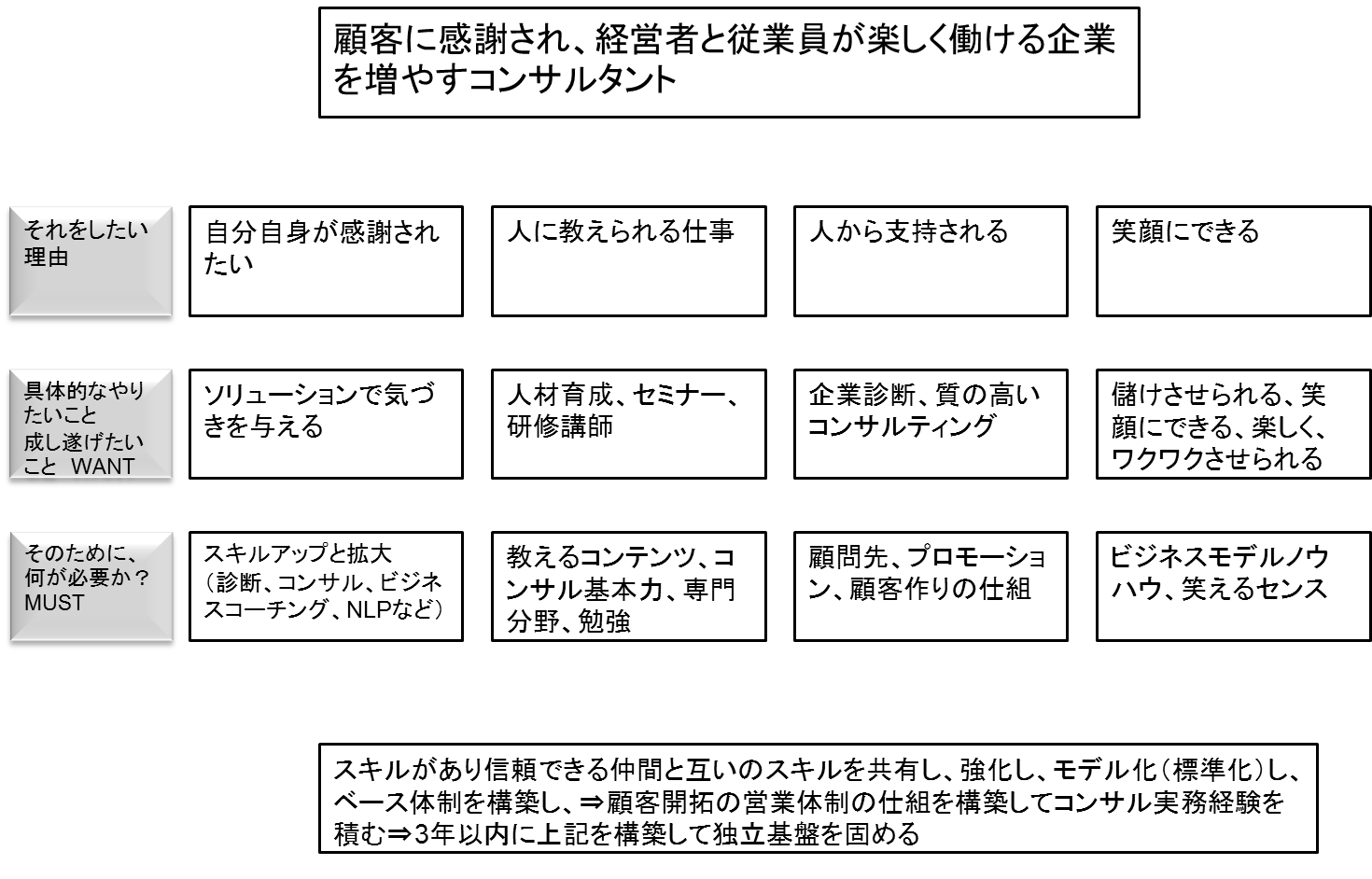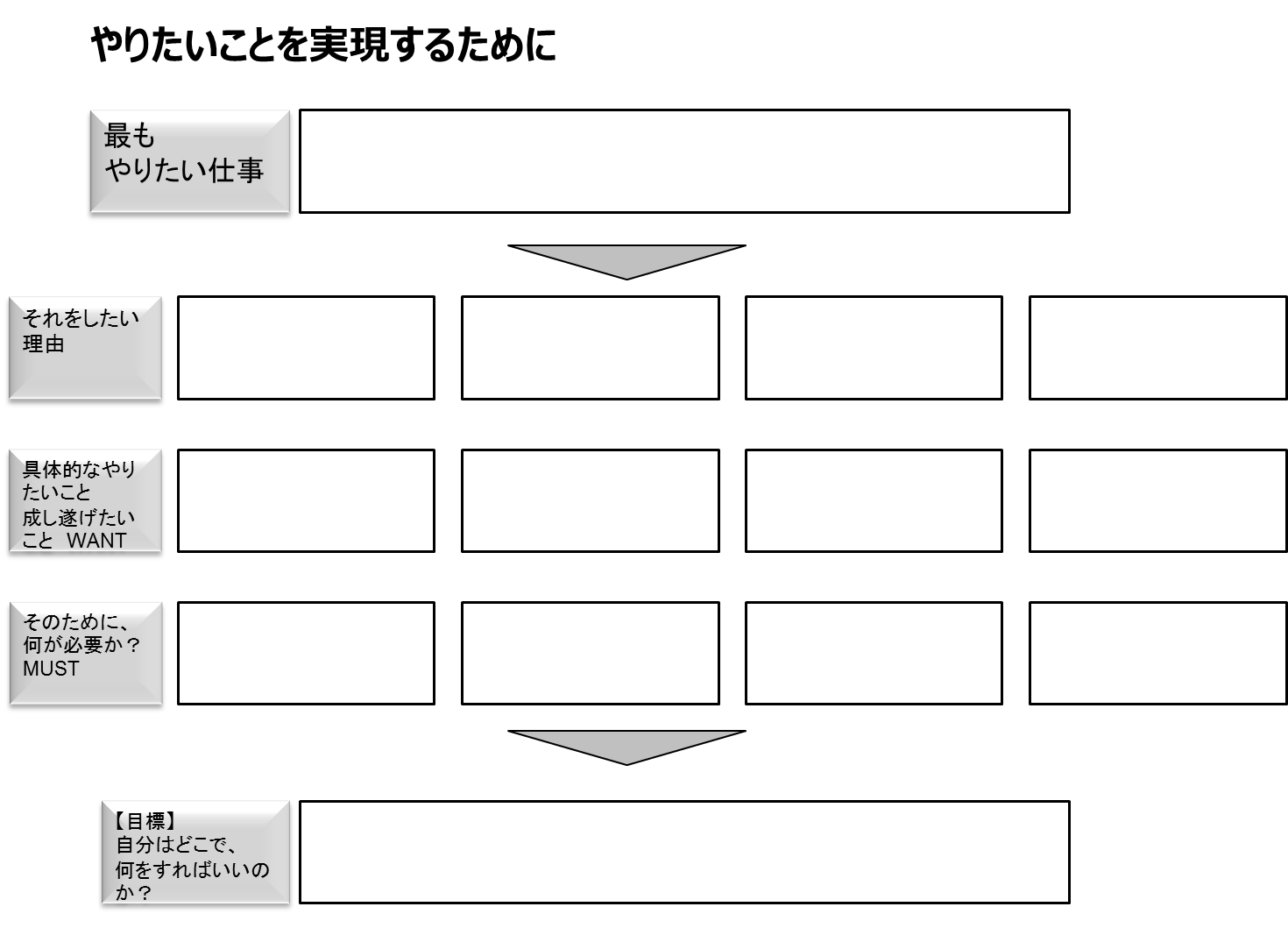 次に、具体的なやりたいこと、成し遂げたいことをWANTレベルで書き出せ