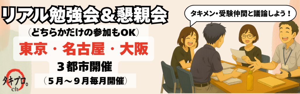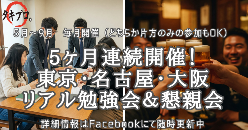 【東京・名古屋・大阪】タキプロリアル勉強会&懇親会!受験仲間と一緒に合格を目指そう!