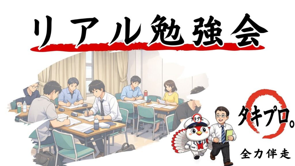 昨年度の合格者(タキプロメンバー)や、受験仲間と直接顔を合わせるリアル勉強会は、対面だからこそ得られる熱量と深い気づきが最大の特徴です。共に合格を目指す「仲間」と直接繋がれるこの場所は、孤独になりがちな受験期間において強いモチベーションの源泉となります。