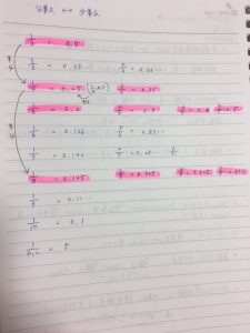 とまと:そうです。これらの本に、分数と小数点の変換は暗記しておくと早く答えが出せるとあったので、ノートに書いて何回も見ました。去年の私はこんな風にノートにまとめました。