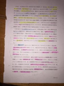 ⑤与件を精読し、段落番号、強み(赤)、弱み(青)、ポイント(黄色)キーワード(囲い込み)など書き込み(~15分)