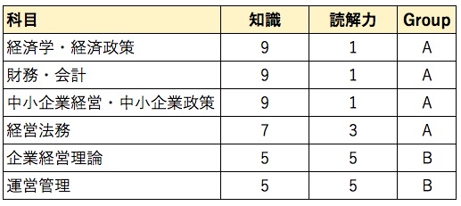 このAグループとBグループの区分けは知識と読解力の重要度のバランスによってなかじーが主観で振り分けたものです。