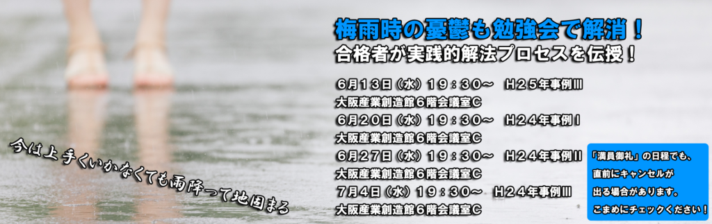 今年もタキプロ関西は「合格者・受験生参加型のみんなで創る勉強会」をキャッチフレーズに、二次試験対策のための勉強会を開催します。