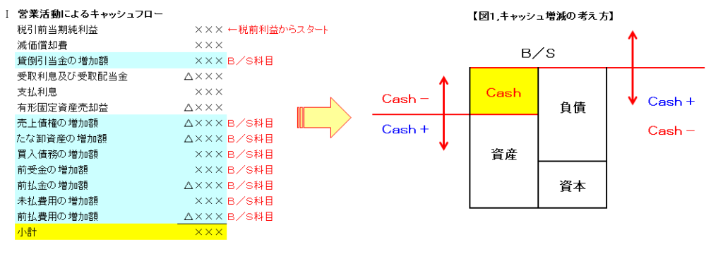 BS科目の調整によるキャッシュの増減は中身を理解して覚える必要があります。