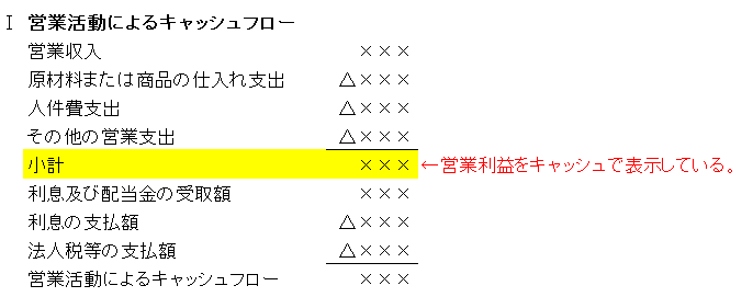 収入額と支出額を直接表示し営業活動CFを表示する方法。